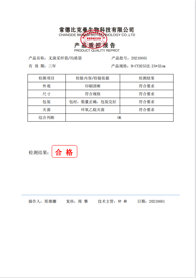 立式无菌采样袋 25x32 (带压条) 50个装 B-CYD2532L 20210601