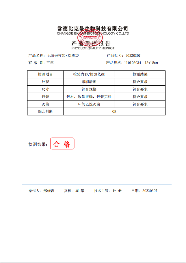 无菌采样袋 12x18 (有印刷无LOGO带压条) 100个装 110102034 20220307