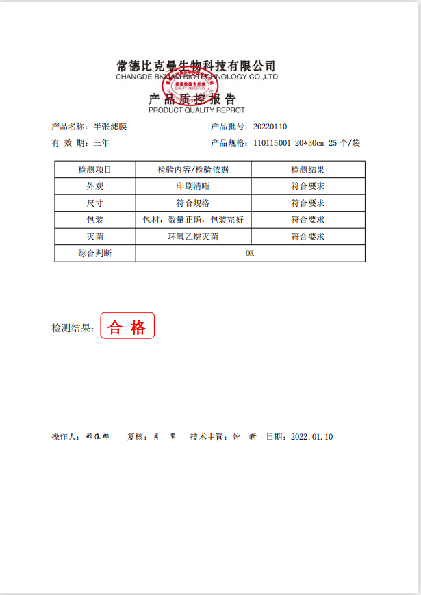 半张滤膜 (纸塑包装) 20x30cm 25个装 110115001 20220110