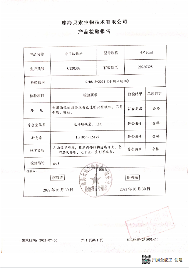贝索 专用油镜油 4x20ml BA-7003A C220302