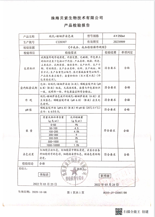 贝索 瑞氏-姬姆萨染色液 250mlx4 C220307