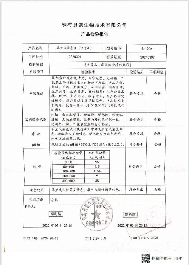 贝索 革兰氏染色液(快速法) 100ml4盒 C220301