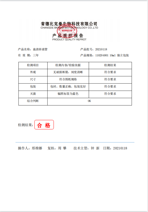 比克曼生物血清移液管 (独立装) 10ml 50支袋 110204001 20210118