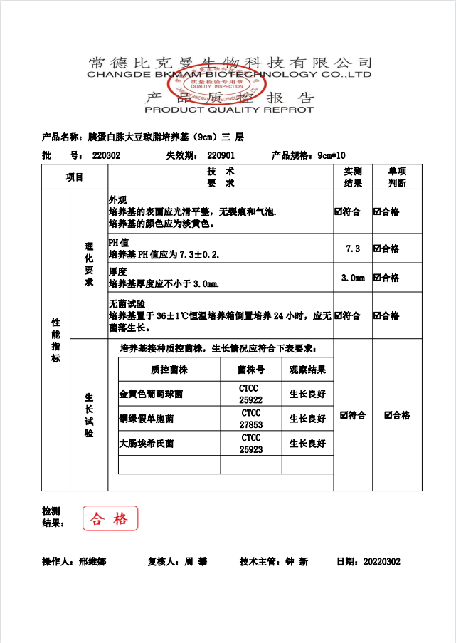 比克曼生物 胰蛋白胨大豆琼脂(三层包装) TSA琼脂平板 9cm 10个袋 110704022 20220302