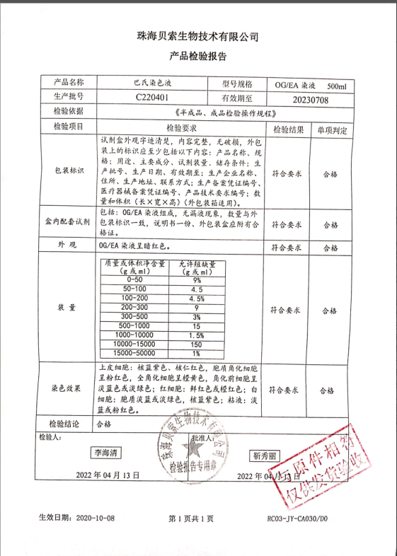 贝索 巴氏染色液 OG-EA 500ml BA4133 C220401