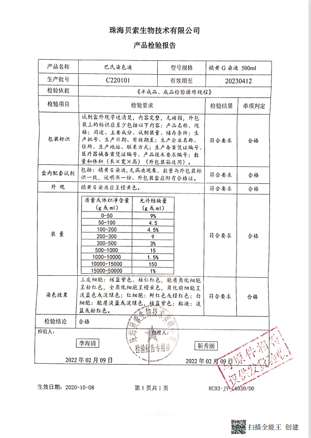 贝索 巴氏染色液 橘黄G 500ml BA4035A C220101