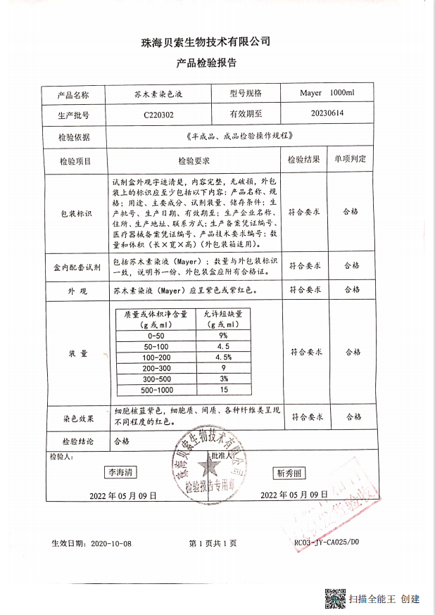 贝索 苏木素染色液 Mayer 1000ml C220302