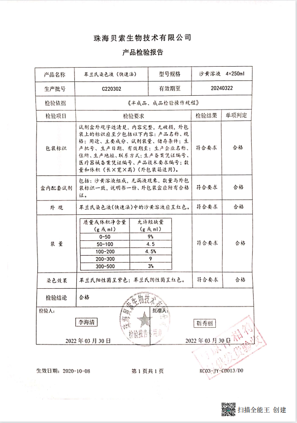 贝索 革兰氏染色液(快速法) 沙黄溶液 4x250ml BA-4016D C220302