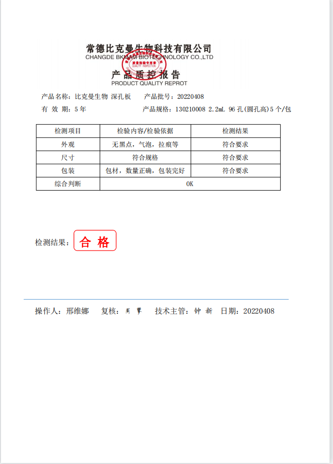 比克曼生物 深孔板 2.2mL 96孔(圆孔高) 5个包 130210008 20220408