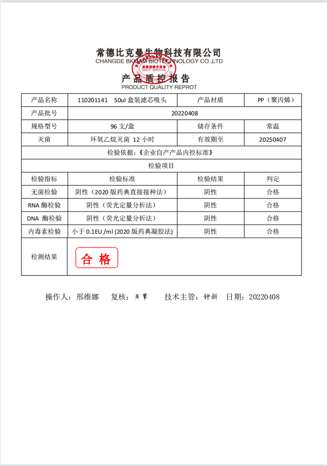 盒装滤芯吸头 50ul 盒装滤芯吸头 96支装 110201141 20220408