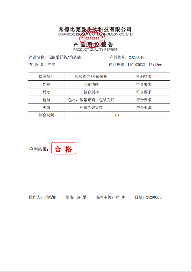 无菌采样袋 12x18 (带压条) 100个装 110102022 20200610