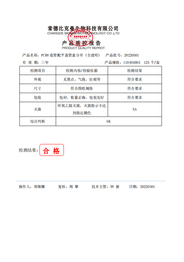 PCR八连排管 0.2ml PCR8连管配平盖管盖分开 (全透明) 125个盒 110404005 20220501