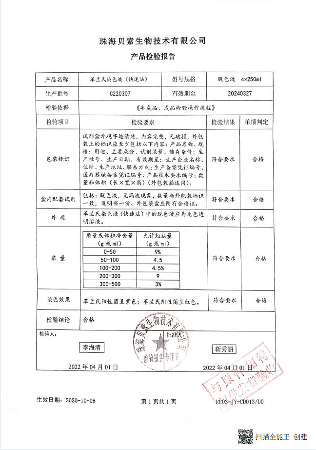 贝索 革兰氏染色液(快速法) 脱色液 4x250ml BA-4016C C220307