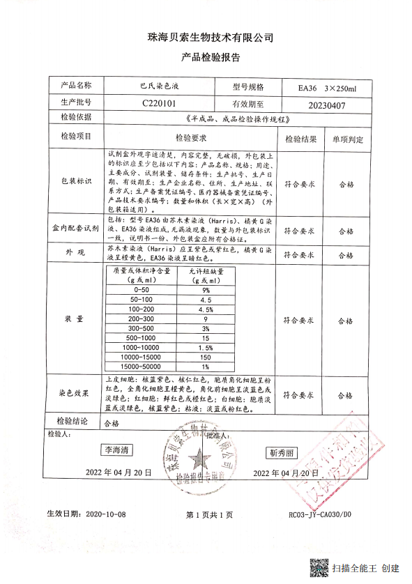 贝索 巴氏染色液 EA-36 3x250ml BA4135 C220101