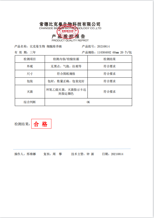 比克曼生物 细胞培养皿 60mm 20个袋 110304002 20210814