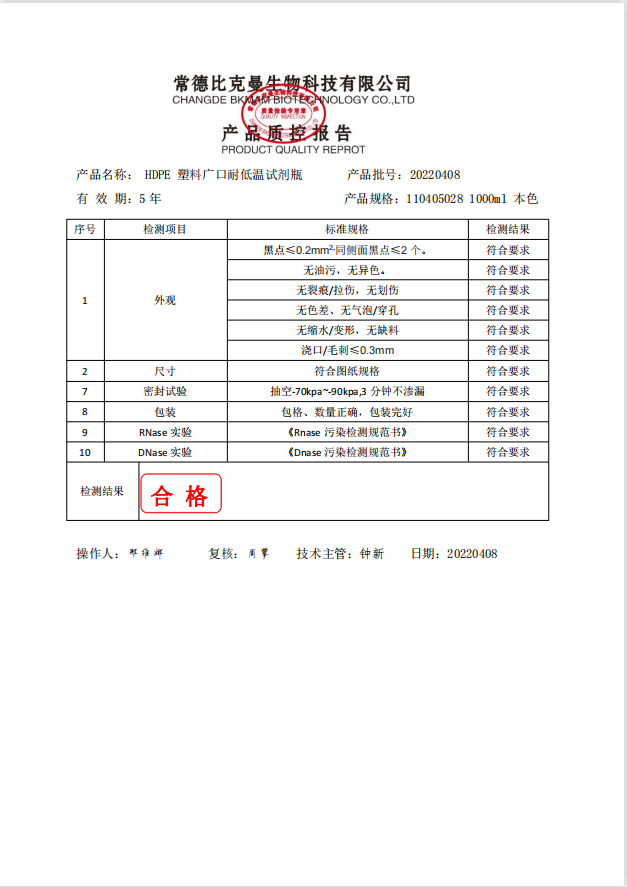 HDPE 塑料广口耐低温试剂瓶 1000ml 本色 110405028 20220408