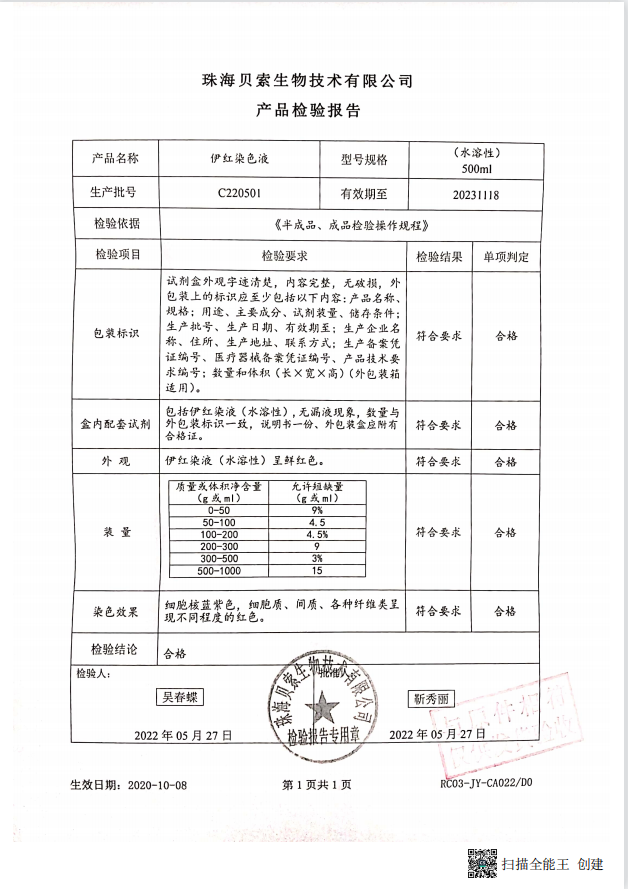 贝索 伊红染色液(水溶性)500ml BA4098 C220501