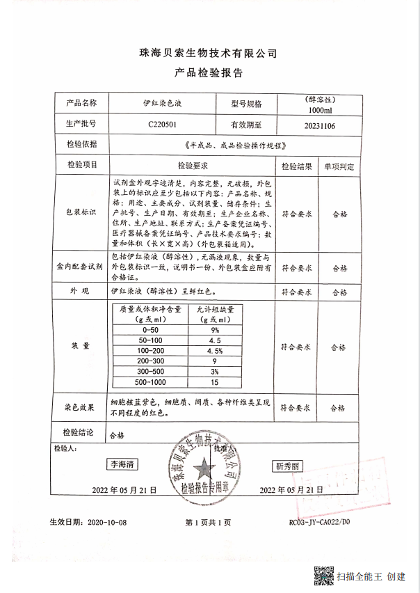 贝索 伊红染液(醇溶性) 1000ml BA4022 C220501