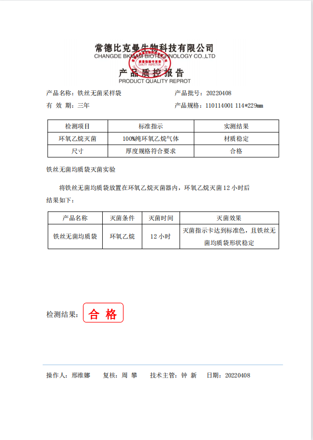 铁丝无菌采样袋 114x229 (带书写区域) 100个装 110114001 20220408