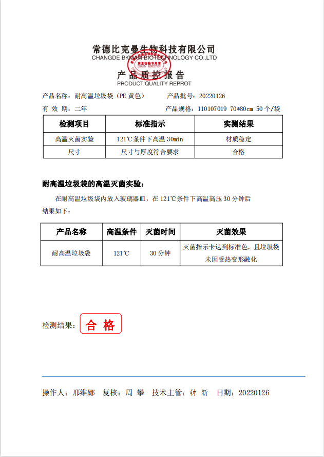 耐高温垃圾袋 黄色 英文 70x80cm (PE复合膜材质) 50个袋 110107019 20220126