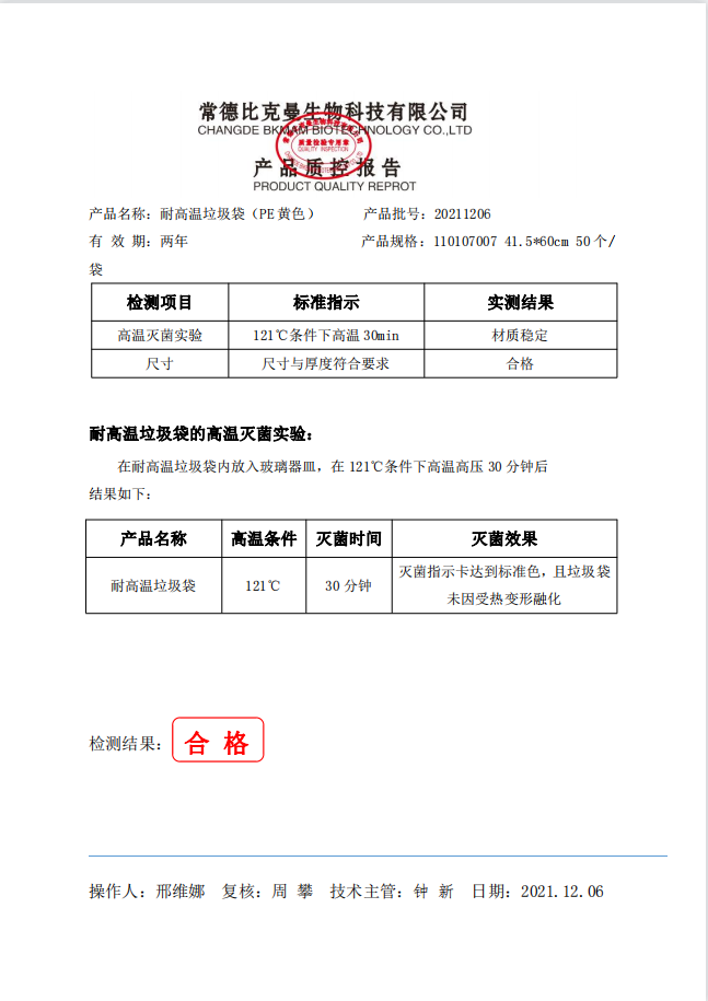 耐高温垃圾袋 黄色 41.5x60cm (PE复合膜材质) 50个袋 110107007 20211206