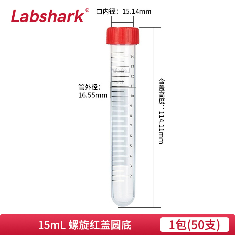 15mL离心管 红盖印刷 螺口圆底 130201032