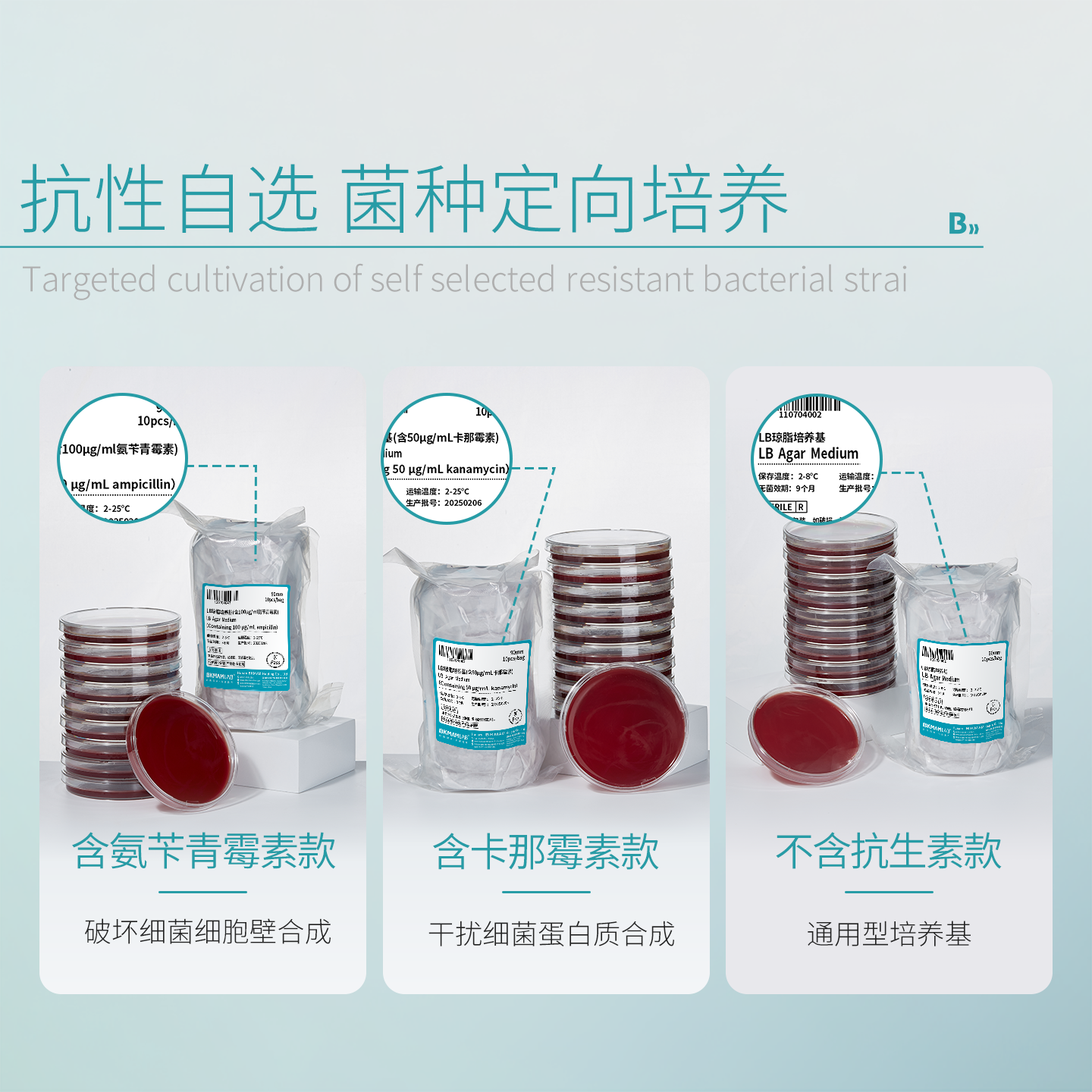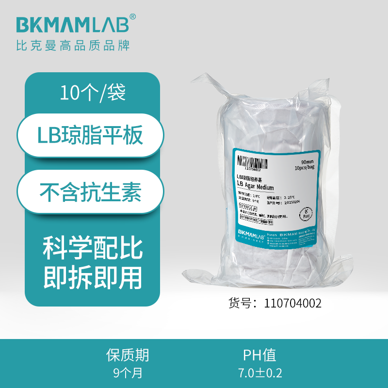 9cmLB琼脂平板(三层袋装)(含卡那抗性) 10个/袋 110704046