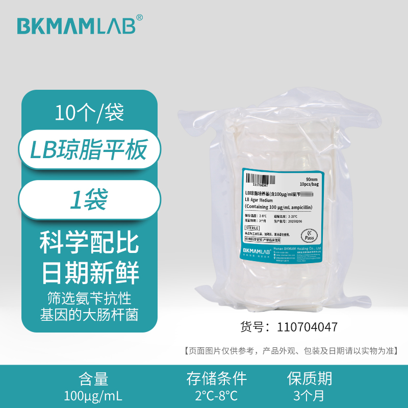 9cmLB琼脂平板(含氨苄抗性)(三层袋装) 10个/袋 110704047