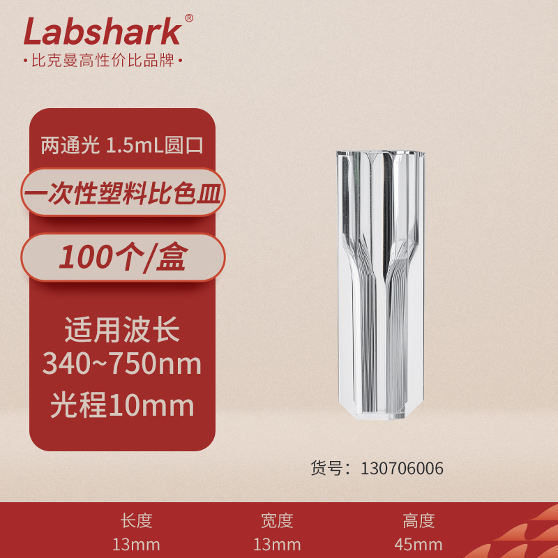1.5mL 两通光方口(无盖) 100个/盒 130706005