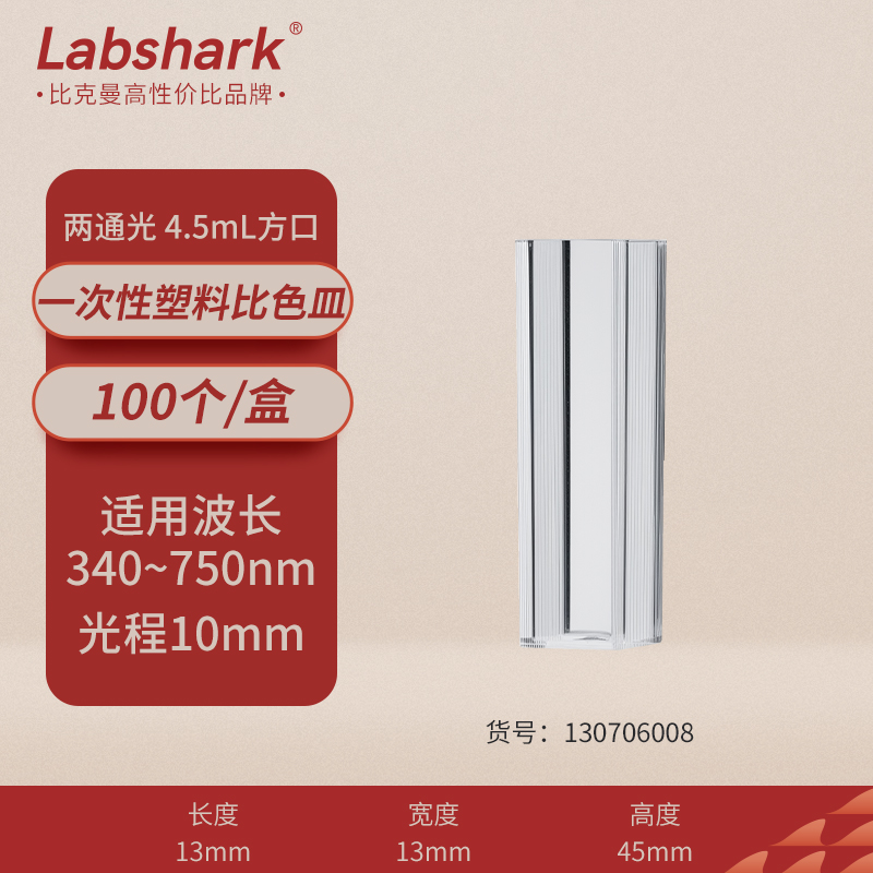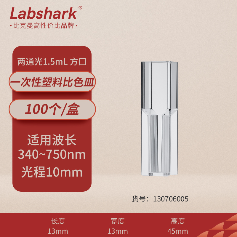 4.5mL 两通光方口(无盖) 100个/盒 130706008