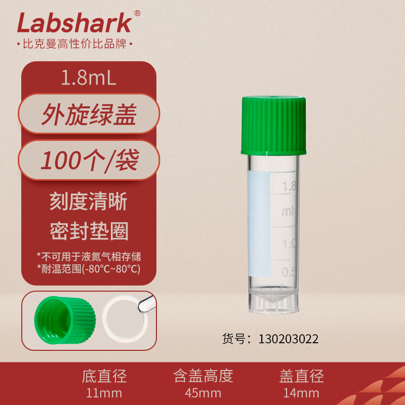 1.8ml冷冻管/冻存管(带垫圈) 绿盖 130203010