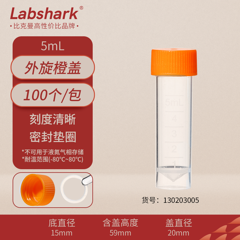 5mL冻存管/冷冻管(带垫圈)橙盖 130203005