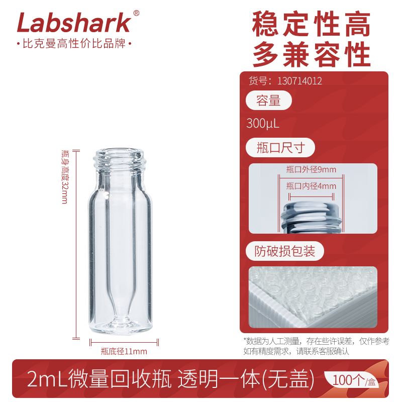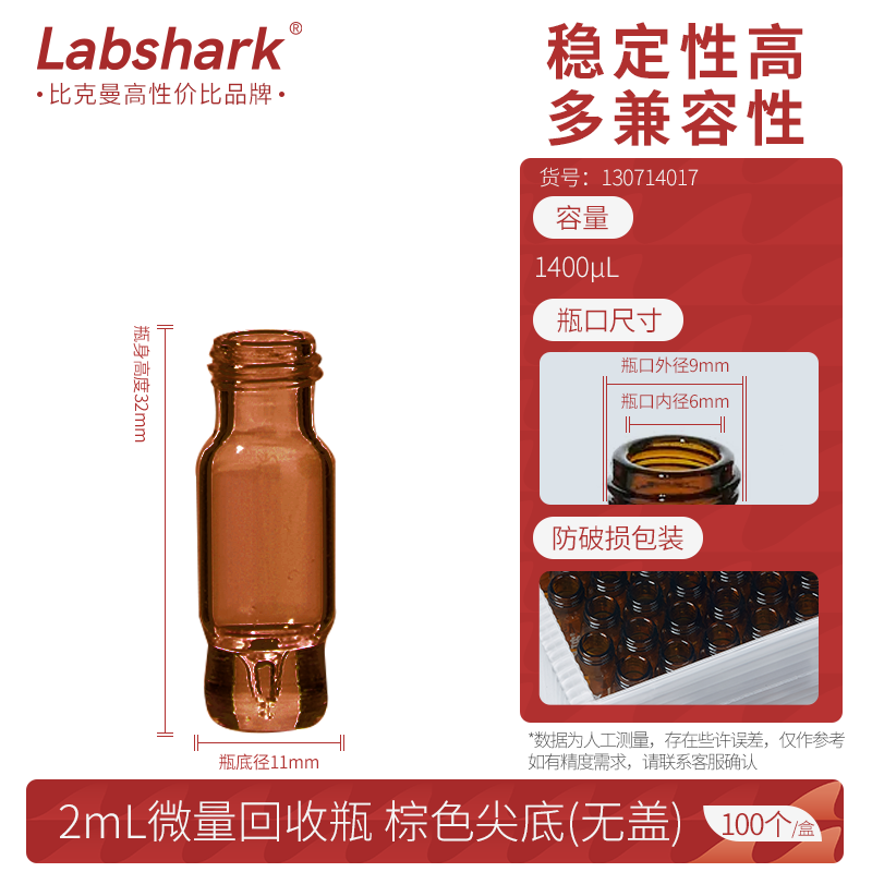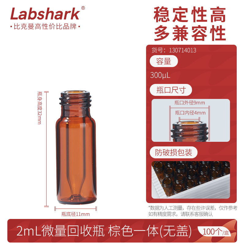 【无盖】300μL棕色一体瓶 100个/盒 130714013