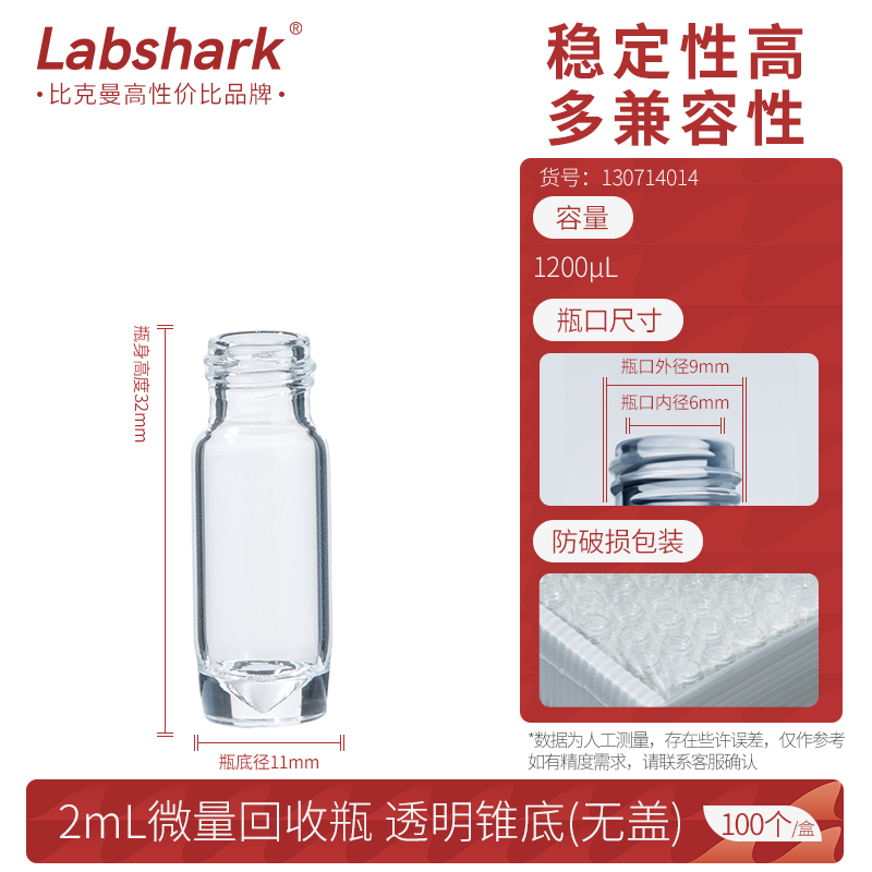 【无盖】1200μL棕色锥底瓶 100个/盒 130714015