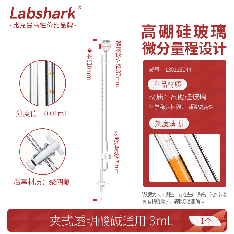 【夹式】透明 玻璃活塞3mL 分度0.01mL 1支/盒 130113039