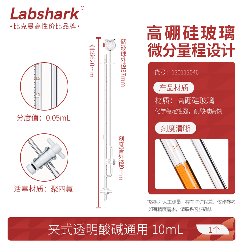 【夹式】透明 四氟活塞10mL 分度0.05mL 1支/盒 130113046
