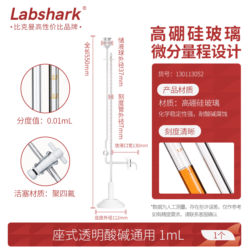 【座式】透明 四氟活塞10mL 分度0.05mL 1支/盒 130113056