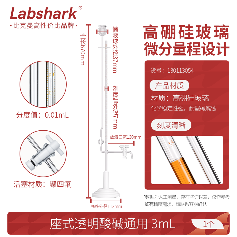 【座式】透明 四氟活塞3mL 分度0.01mL 1支/盒 130113054