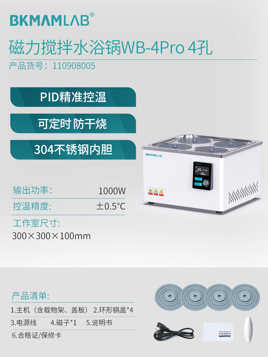 【磁力搅拌】WB-4Pro四孔【精准控温/可定时/防干烧】 110908005