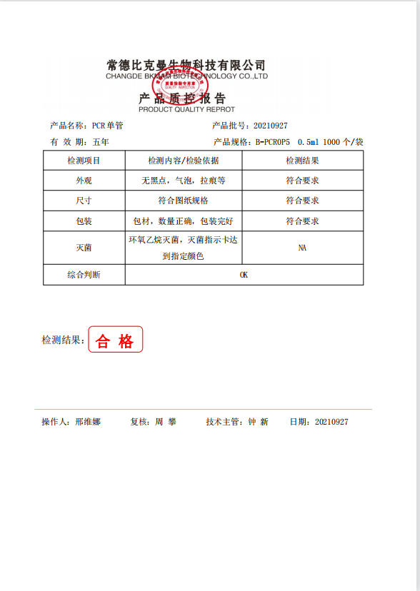 PCR单管 0.5ml PCR单管 1000个袋 B-PCR0P5 20210927