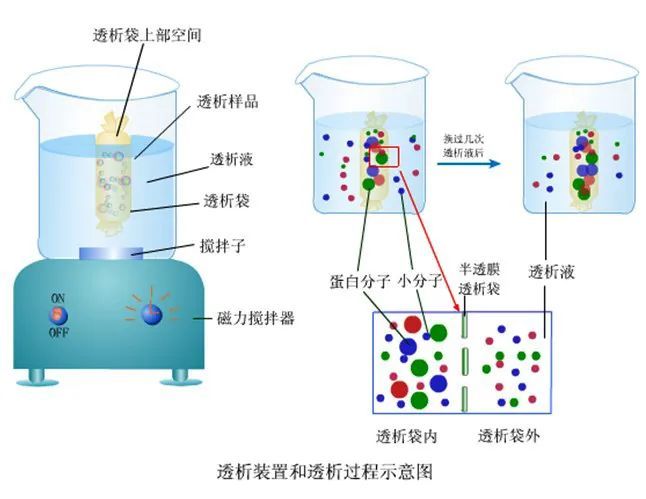 保留在透析袋内未透析出的样品溶液称为“保留液”,袋(膜)外的溶液称为“渗出液”或“透析液”