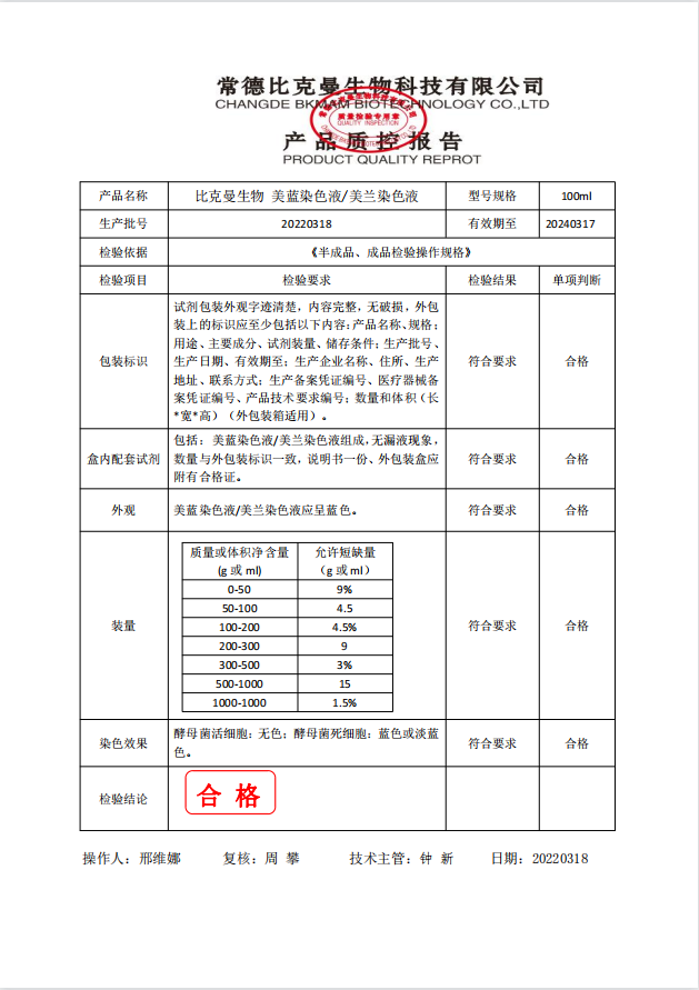 比克曼生物 美蓝染色液(美兰染色液) 100ml瓶 110703021 20220318