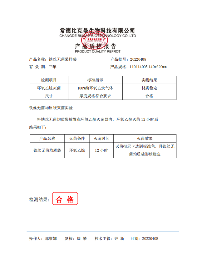 铁丝无菌采样袋 140x229 (带书写区域) 100个装 110114005 20220408