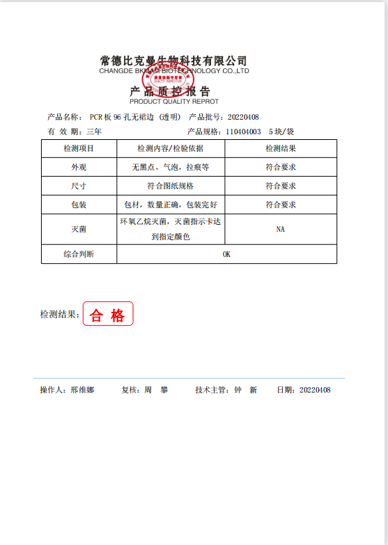 PCR板96孔无裙边 (透明) 0.2ml 5块袋 110404003 20220408