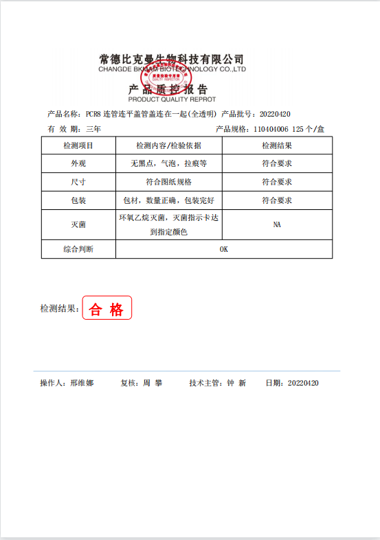 PCR八连排管 0.2mlPCR8连管连平盖管盖连在一起(全透明) 125个盒 110404006 20220420