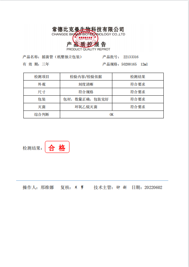 兰杰柯 摇菌管(12ml 纸塑独立包装)1个袋 50200165 22133316