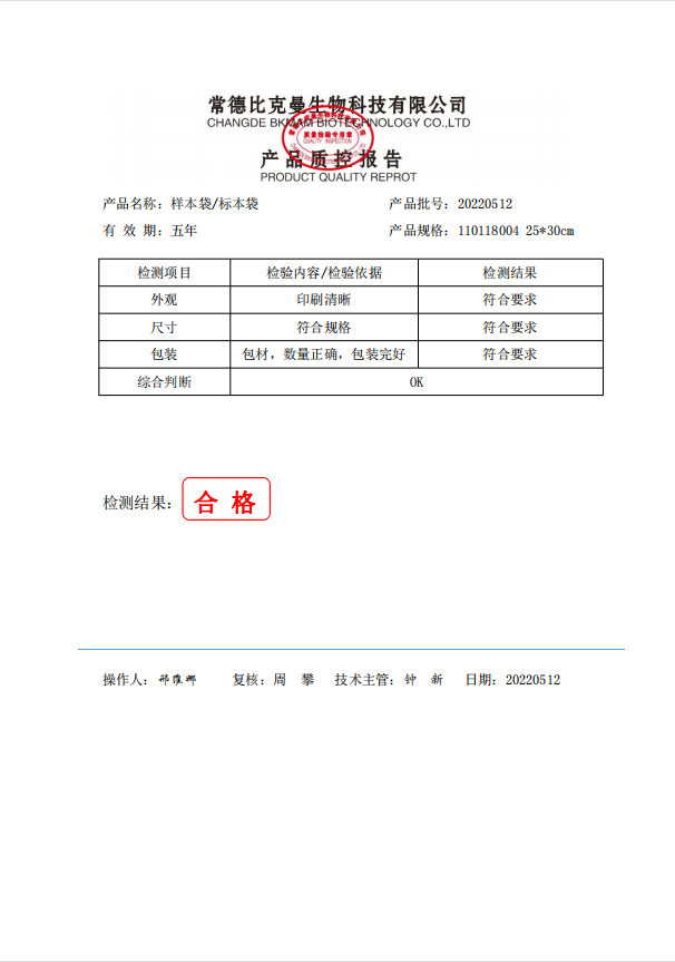 比克曼生物 样本袋 25x30cm 100个 袋 110118004 20220512