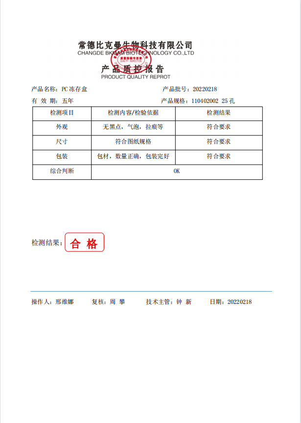 比克曼生物 PC冻存盒 25孔 110402002 20220218